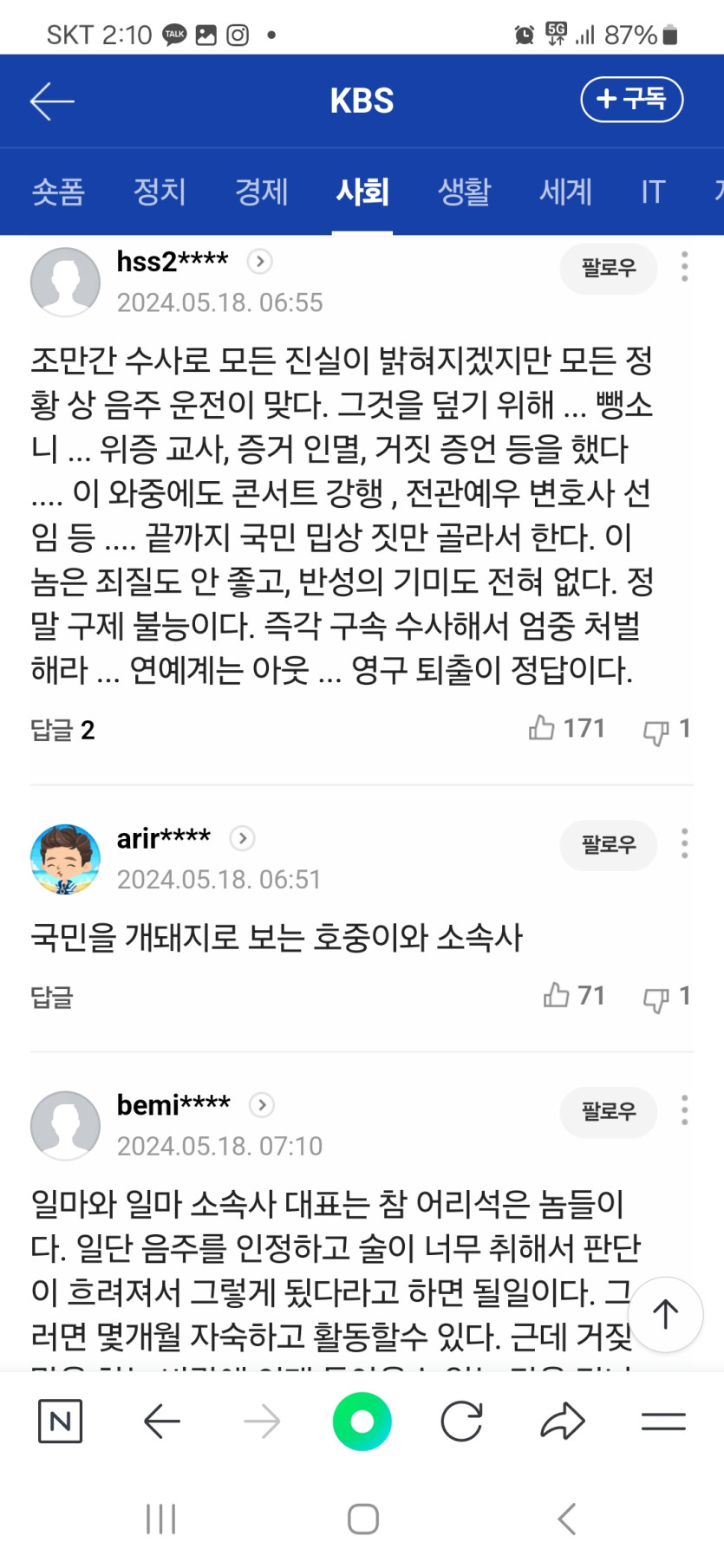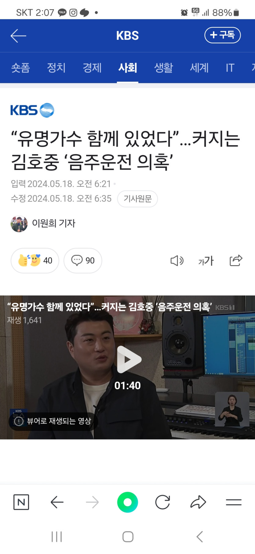 소속사는 김 씨가 피곤해서 업소가 제공하는 대리기사 서비스를 이용했다고 해명한 거로 알려졌습니다.