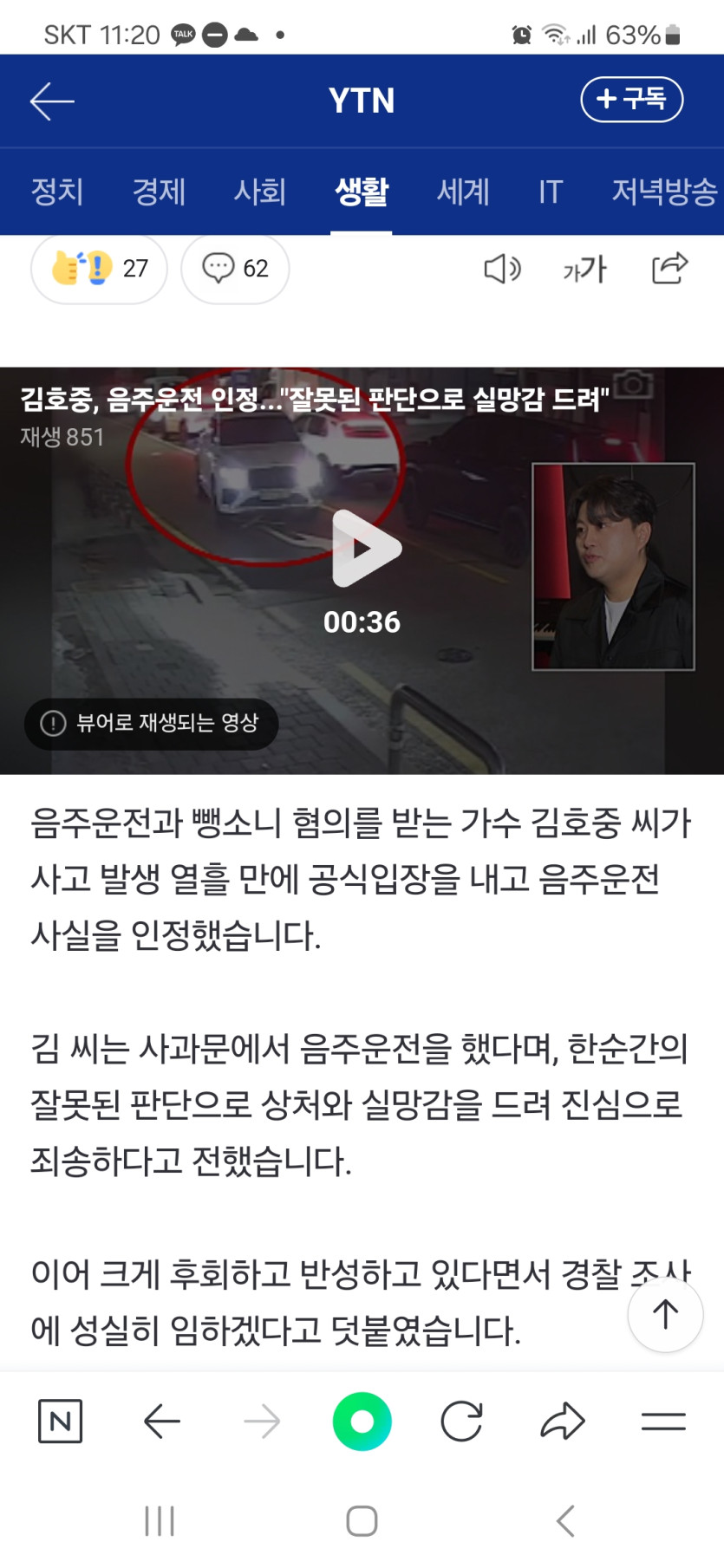 김호중이 음주운전 뺑소니 인정했네요 페이지 정보 작성자 최고관리자쪽지보내기 메일보내기 자기소개 아이디로 검색 전체게시물쪽지보내기 메일보내기 자기소개 아이디로 검색 전체게시물 작성일 2024.05.19 23:22 3,033 조회 0 추천 0 비추천 목록 본문 김호중은 앞으로 어떻게 되는 것일까요? 법정 구속과 연예계 은퇴가 점쳐지네요. ㅠ 댓글 반응도 살펴보세요. 민심이 등을 돌렸네요. 0 추천 0 비추천 SNS 공유 신고 차단 태그 #김호중, #음주운전 댓글 0 로그인한 회원만 댓글 등록이 가능합니다. 이전글 다음글 목록