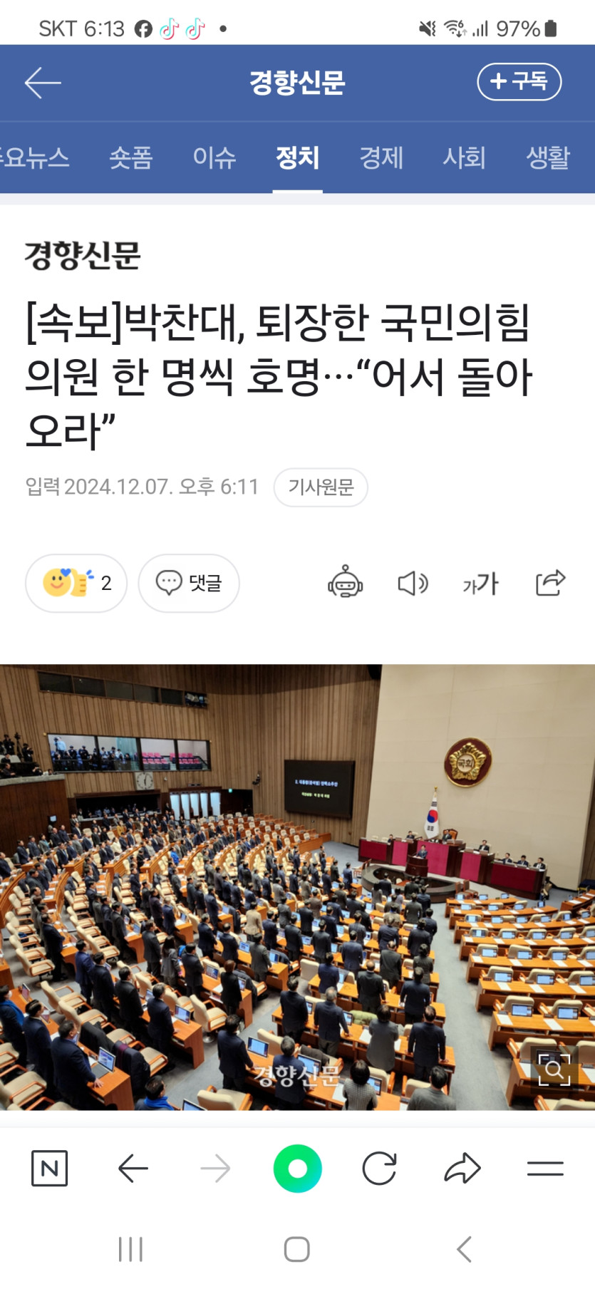 국민의힘 의원 퇴장으로 윤석열대통령 탄핵은 결렬될 듯 페이지 정보 작성자 윤씨네쪽지보내기 메일보내기 자기소개 아이디로 검색 전체게시물쪽지보내기 메일보내기 자기소개 아이디로 검색 전체게시물 작성일 2024.12.07 18:16 3,647 조회 0 추천 0 비추천 목록 본문 진짜 국민의힘 의원들 뭐냐? 0 추천 0 비추천 SNS 공유 신고 차단 링크 https://n.news.naver.com/article/032/0003337524 2326 회 연결 댓글 0 로그인한 회원만 댓글 등록이 가능합니다. 이전글 다음글 목록